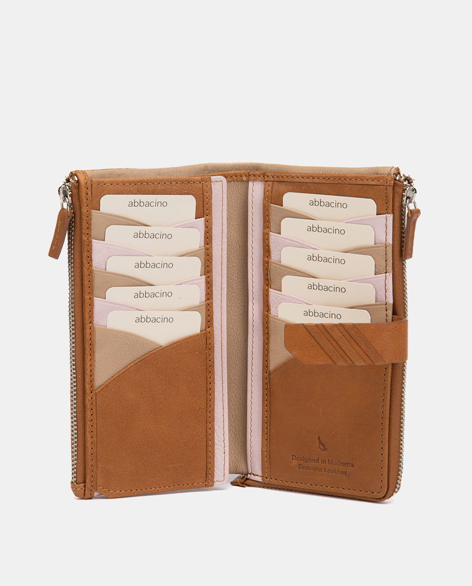 Cartera grande de piel cognac