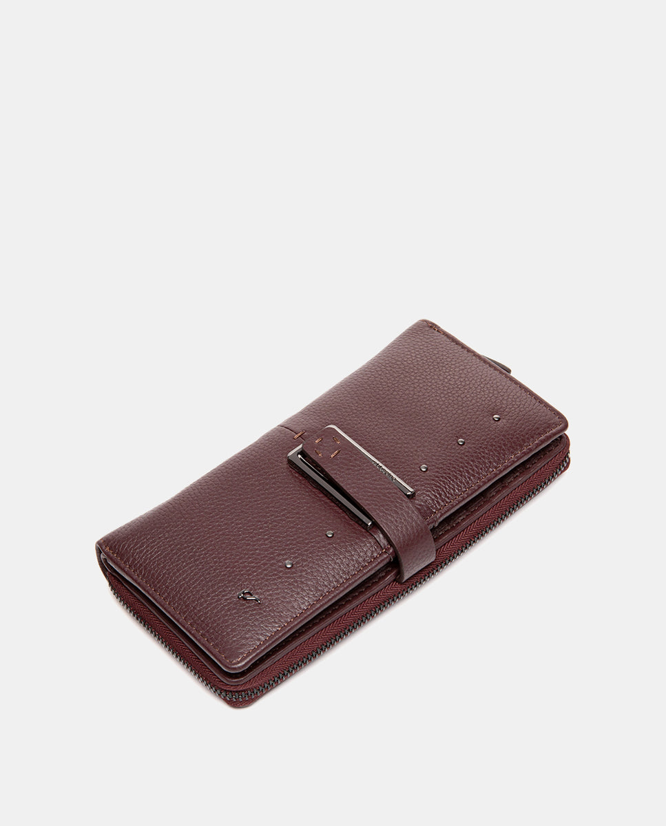 Cartera grande en piel burdeos
