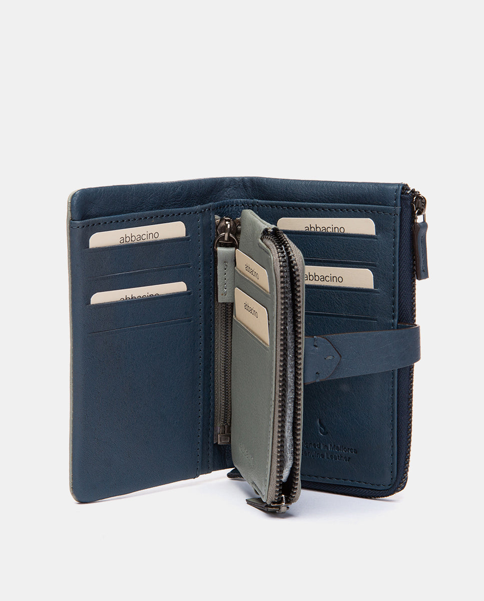 Cartera mediana en piel azul