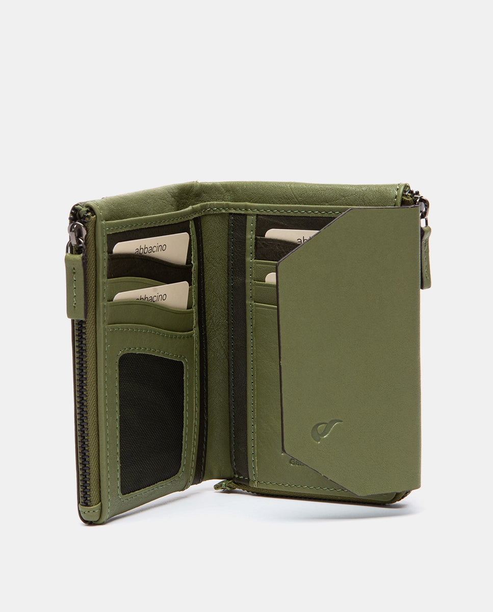 • Interior con múltiples ranuras para tarjetas y compartimento para billetes.