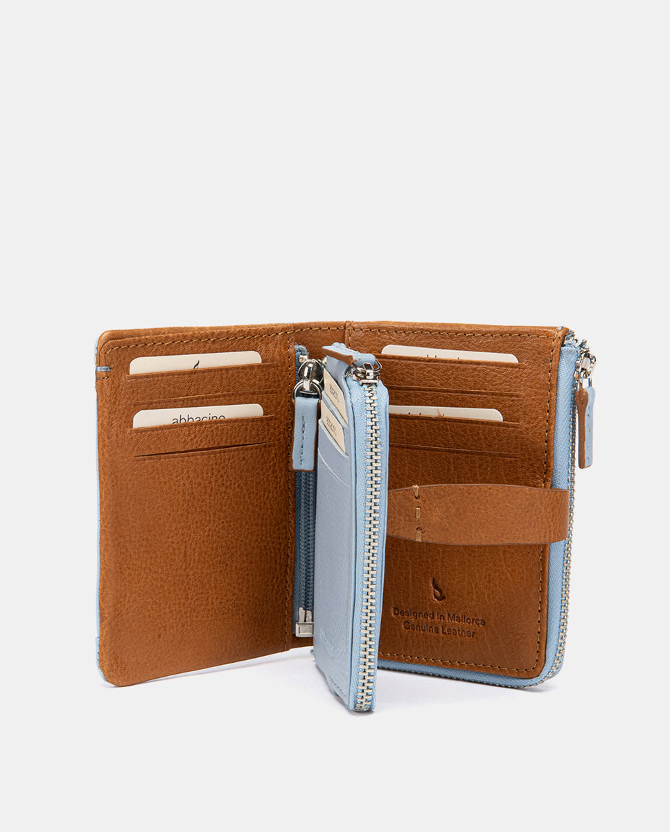 Cartera pequeña de piel azul claro