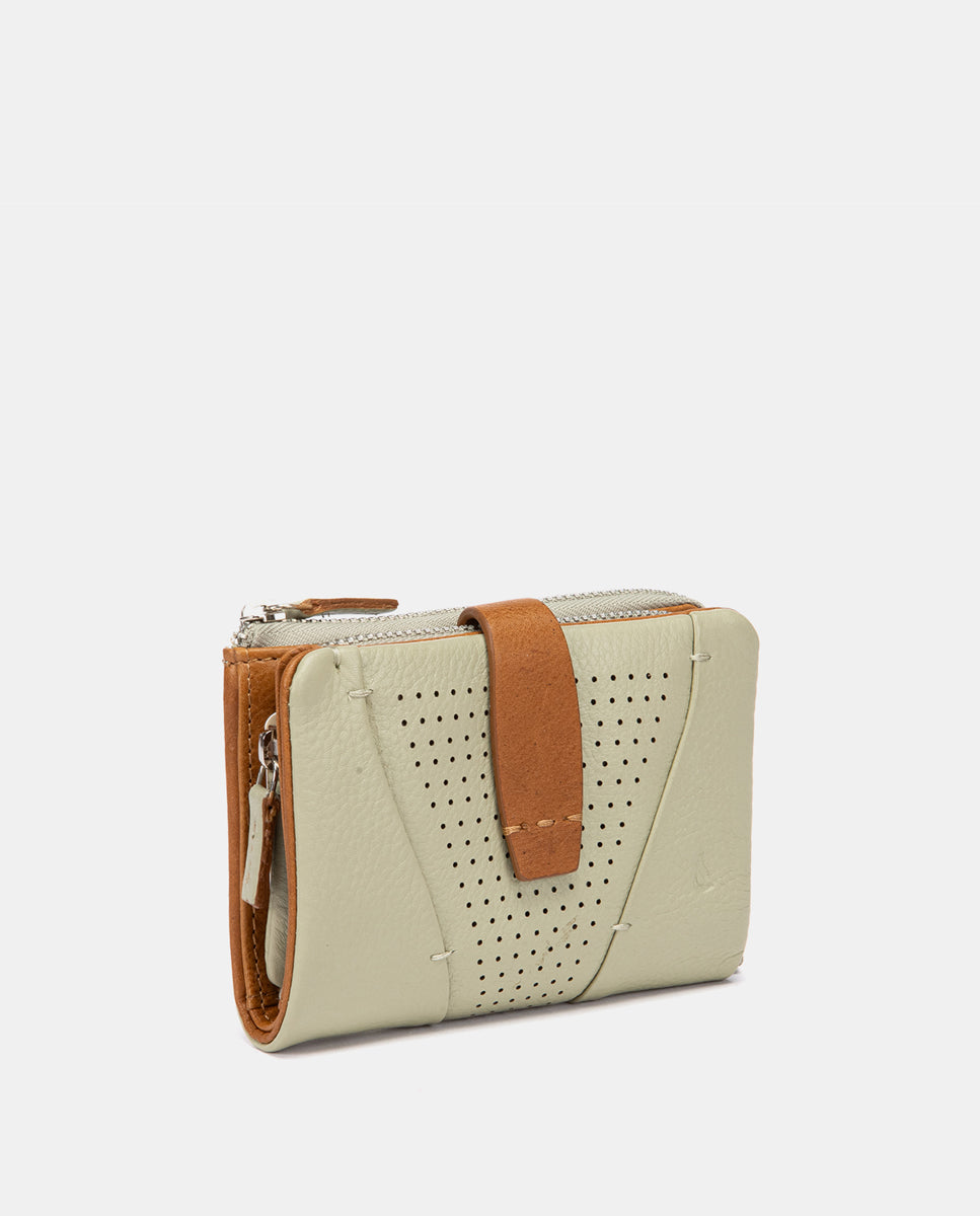 Cartera pequeña de mujer elaborada en piel troquelada, con diseño amplio y teñido en colores de temporada, ideal para acompañarte en primavera y verano. Sus principales características son: