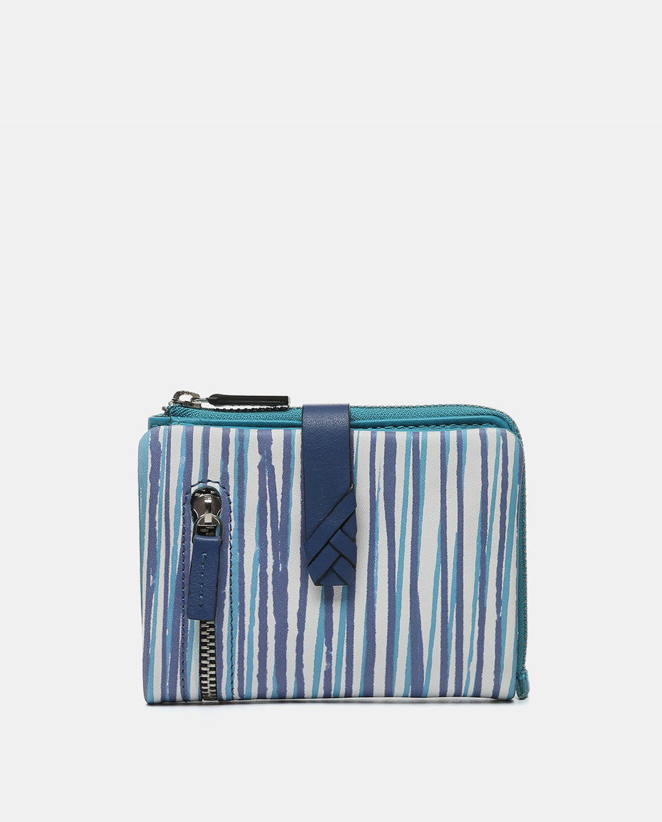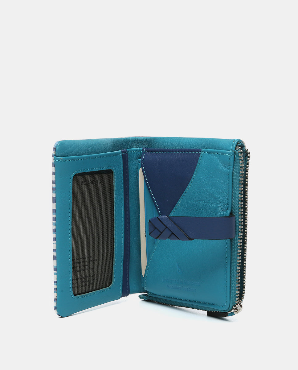 Cartera pequeña en piel con estampado en azul