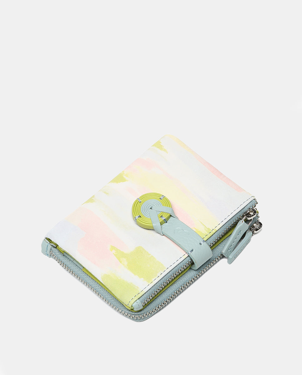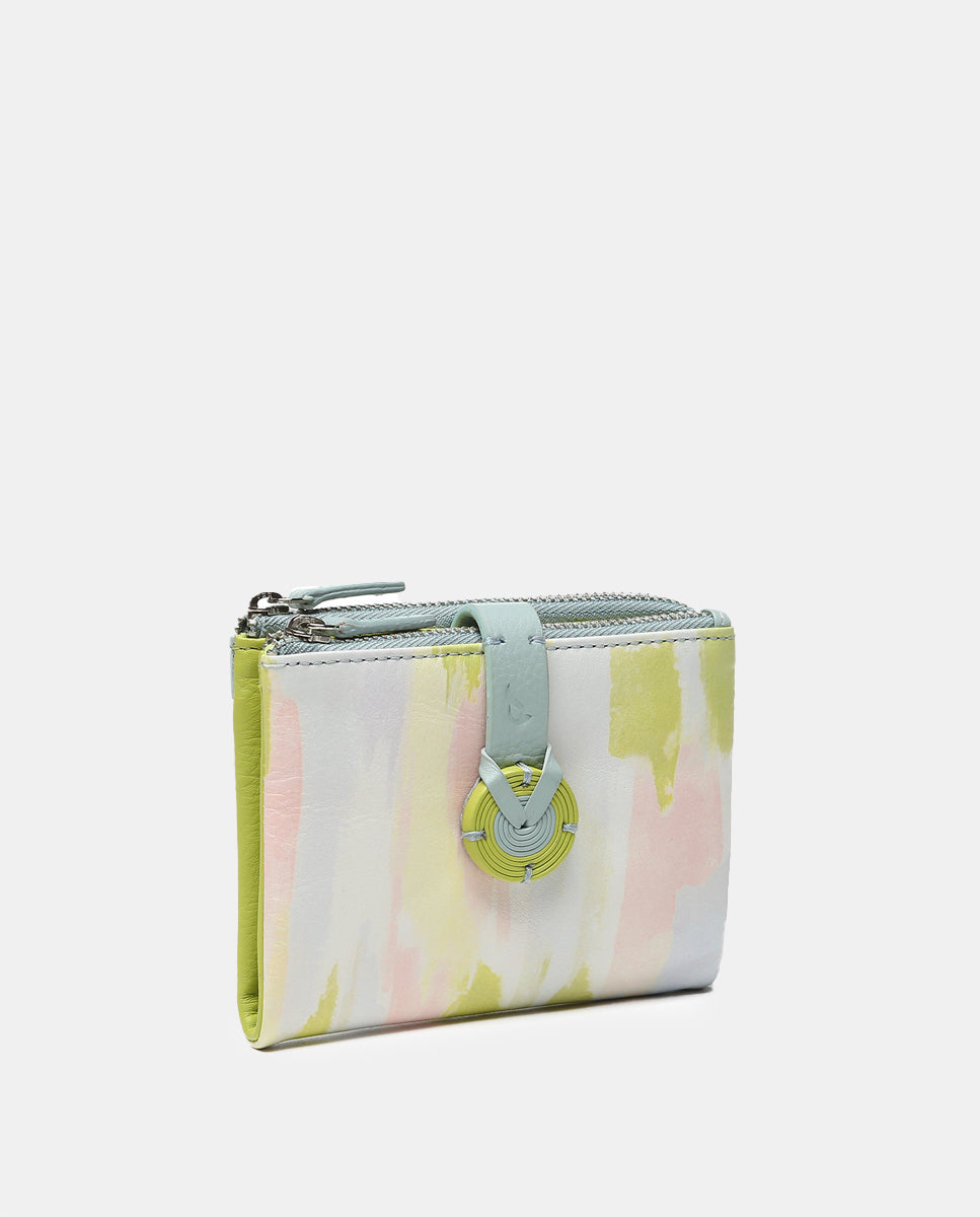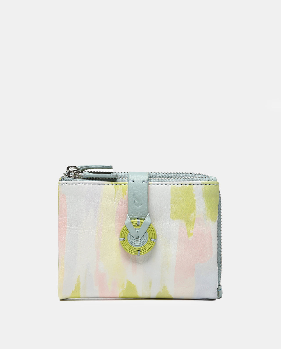 Cartera pequeña de mujer elaborada con piel. Un diseño con un bonito estampado acuarela, en tonos muy veraniegos. Se trata de un complemento que cuida hasta el mínimo detalle y que gracias a su distribución nos permite conseguir un orden excelente. Sus principales características son: