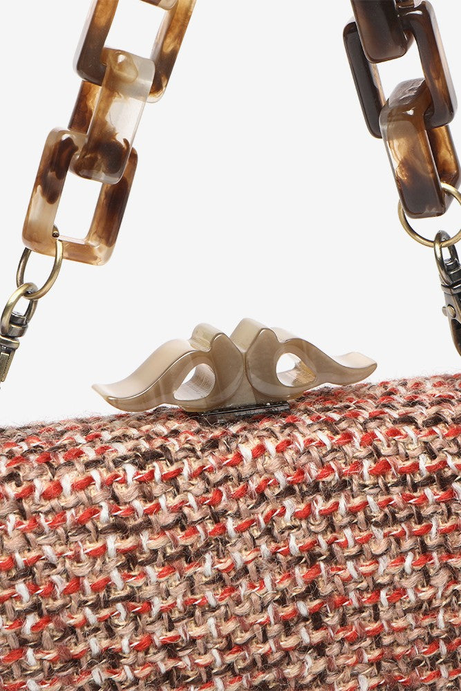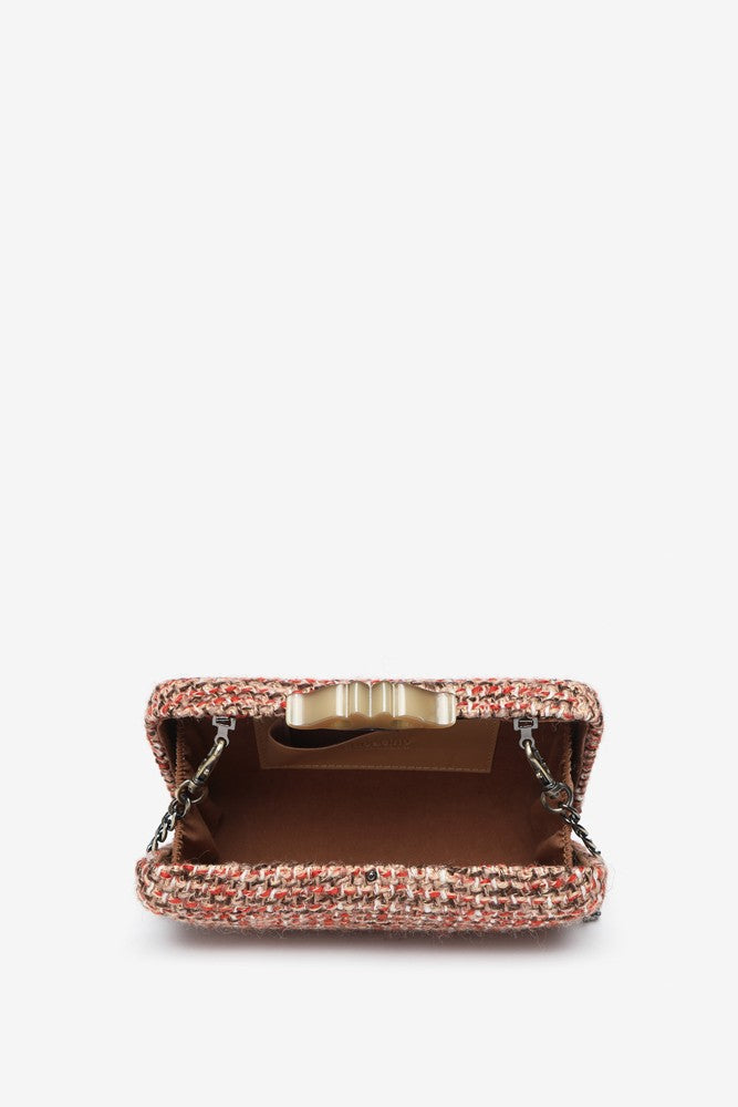 Clutch de fiesta en tweed. Este bolso de mano es la opción perfecta para aportar un toque sofisticado y elegante a tus looks más especiales.