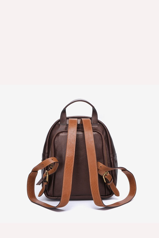 Mochila con herraje en piel bronce