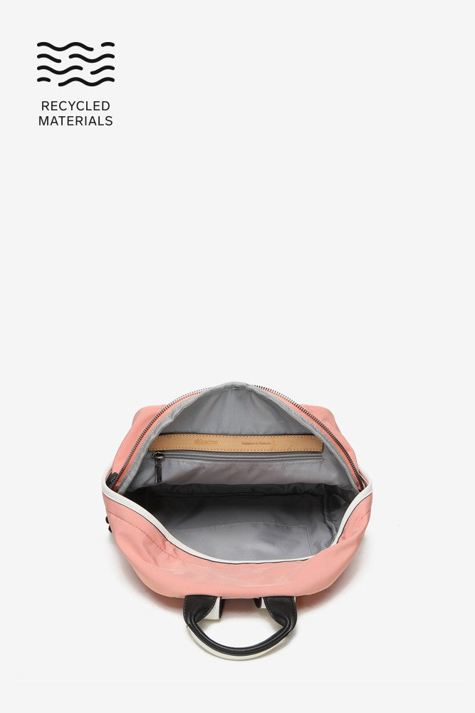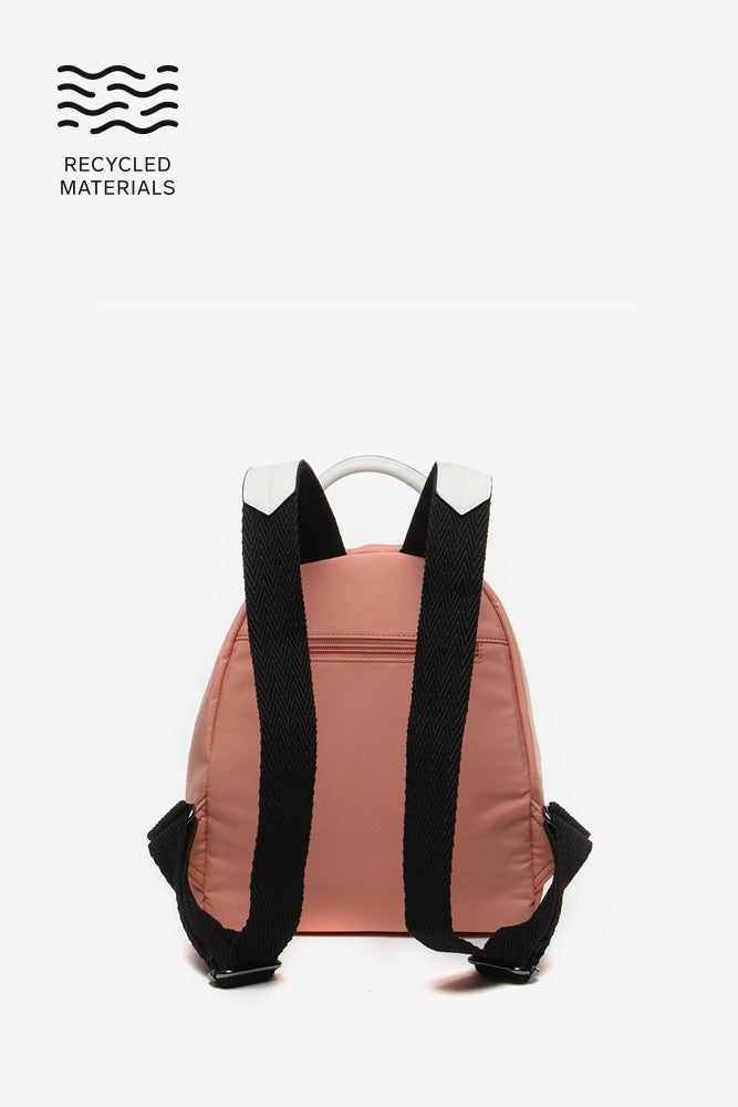 Mochila de mujer elaborada en materiales reciclados y sostenibles. Un diseño muy práctico para el día a día gracias a su gran capacidad interior, ideal para llevar incluso tu ordenador portátil. Sus colores frescos y luminosos lo convierten en un imprescindible para tus looks de primavera y verano.