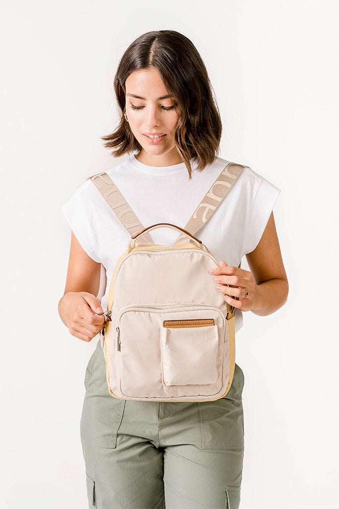 Mochila en materiales reciclados en beige