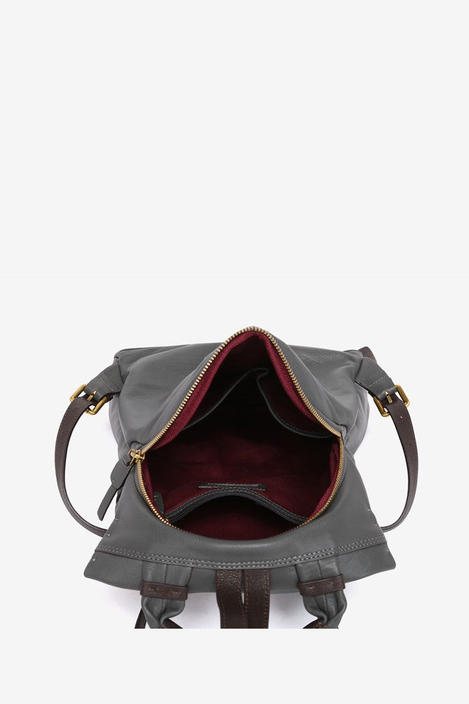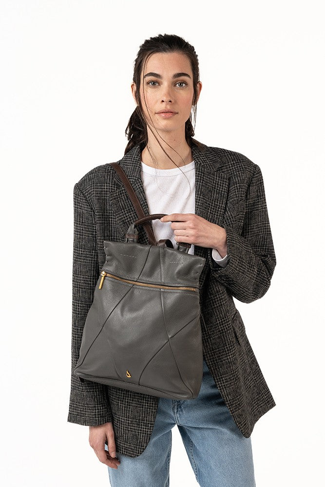 Mochila en piel gris
