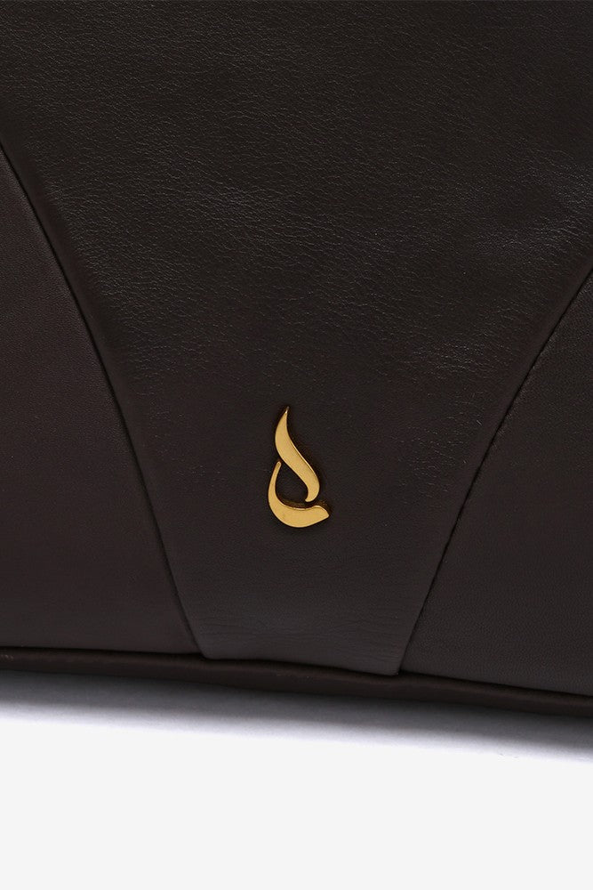 • Aplique metálico con el logo de la marca y mosquetones en color dorado.