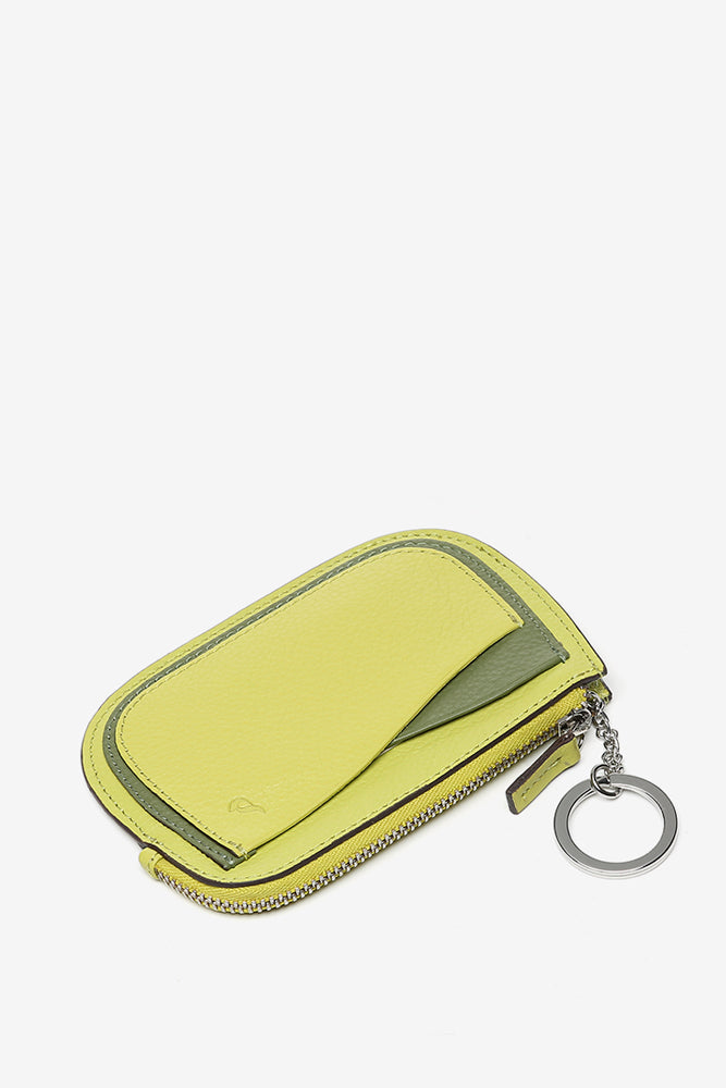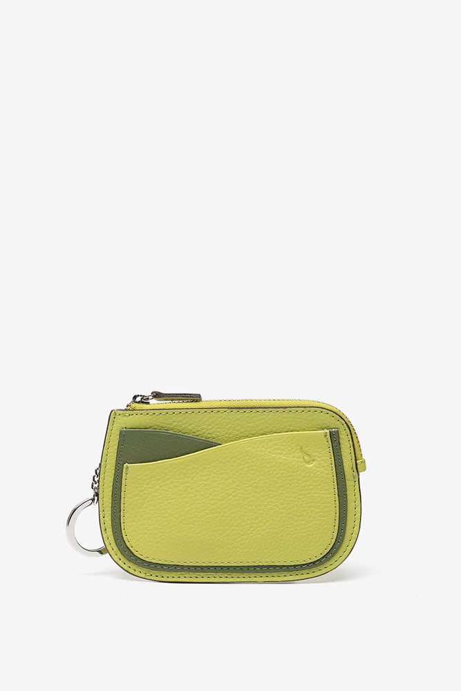 Monedero de mujer elaborado en piel sobre la que destaca una fina franja curva que combina con el tono principal del complemento. Sus colores vivos y refrescantes son perfectos para los días de verano. Sus principales características son: