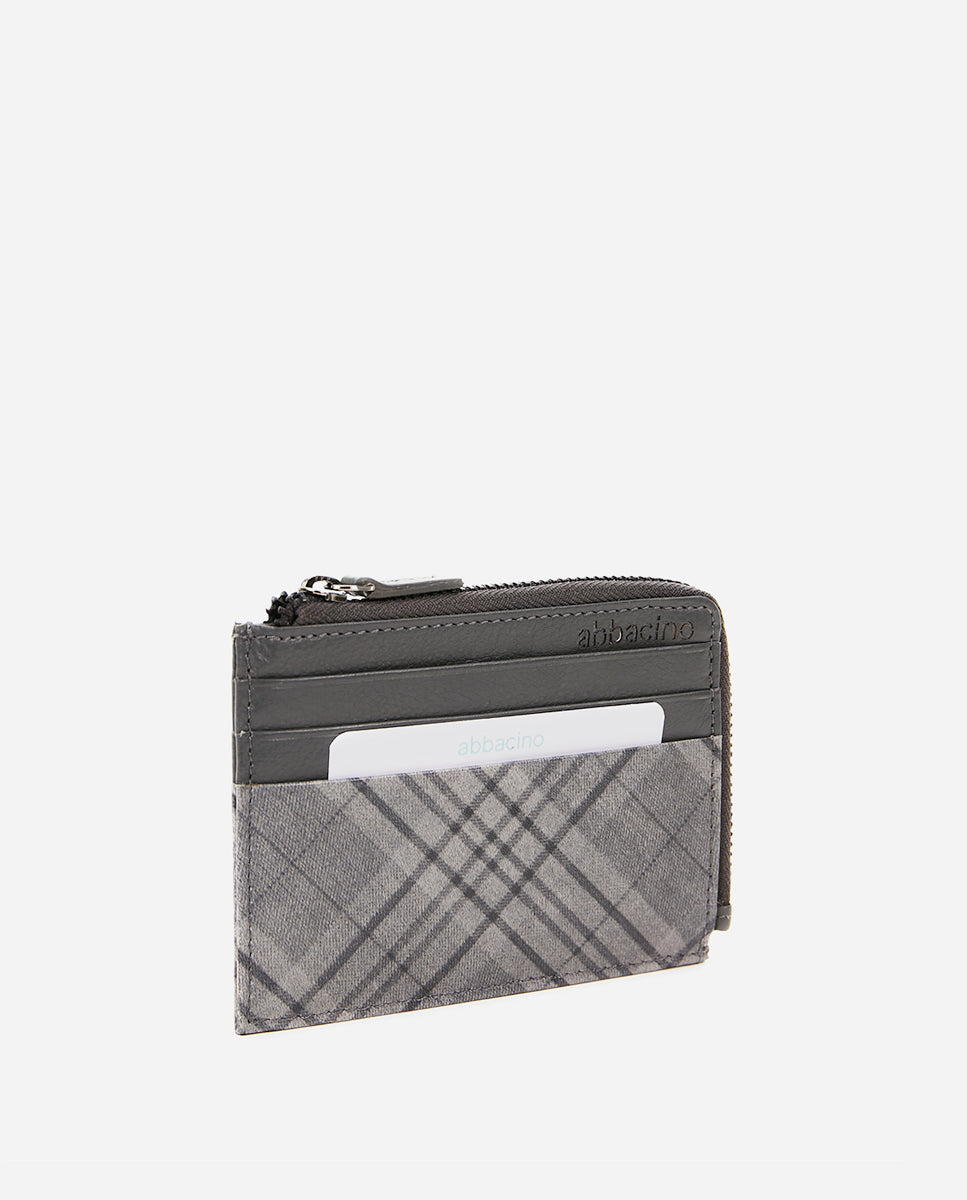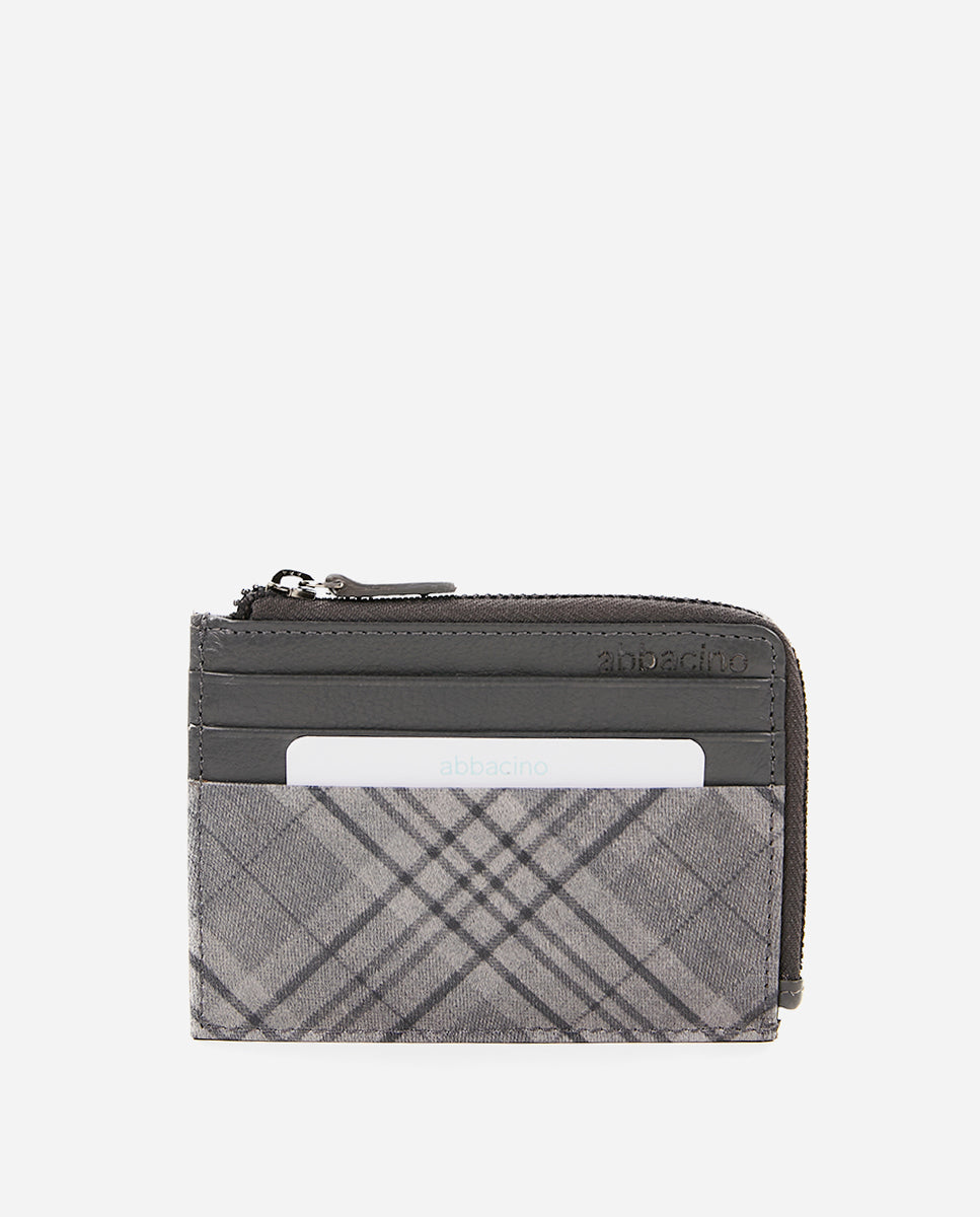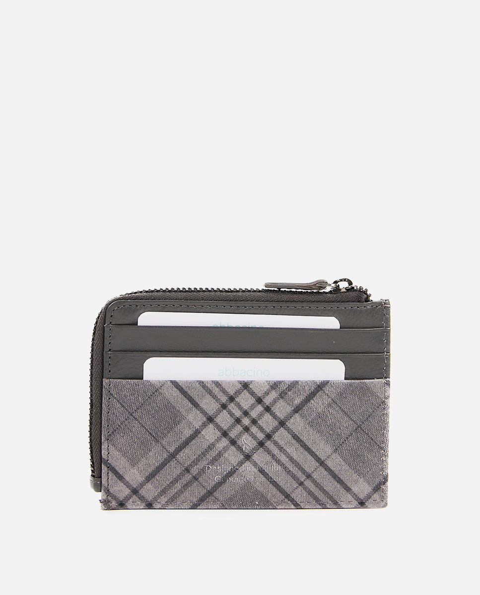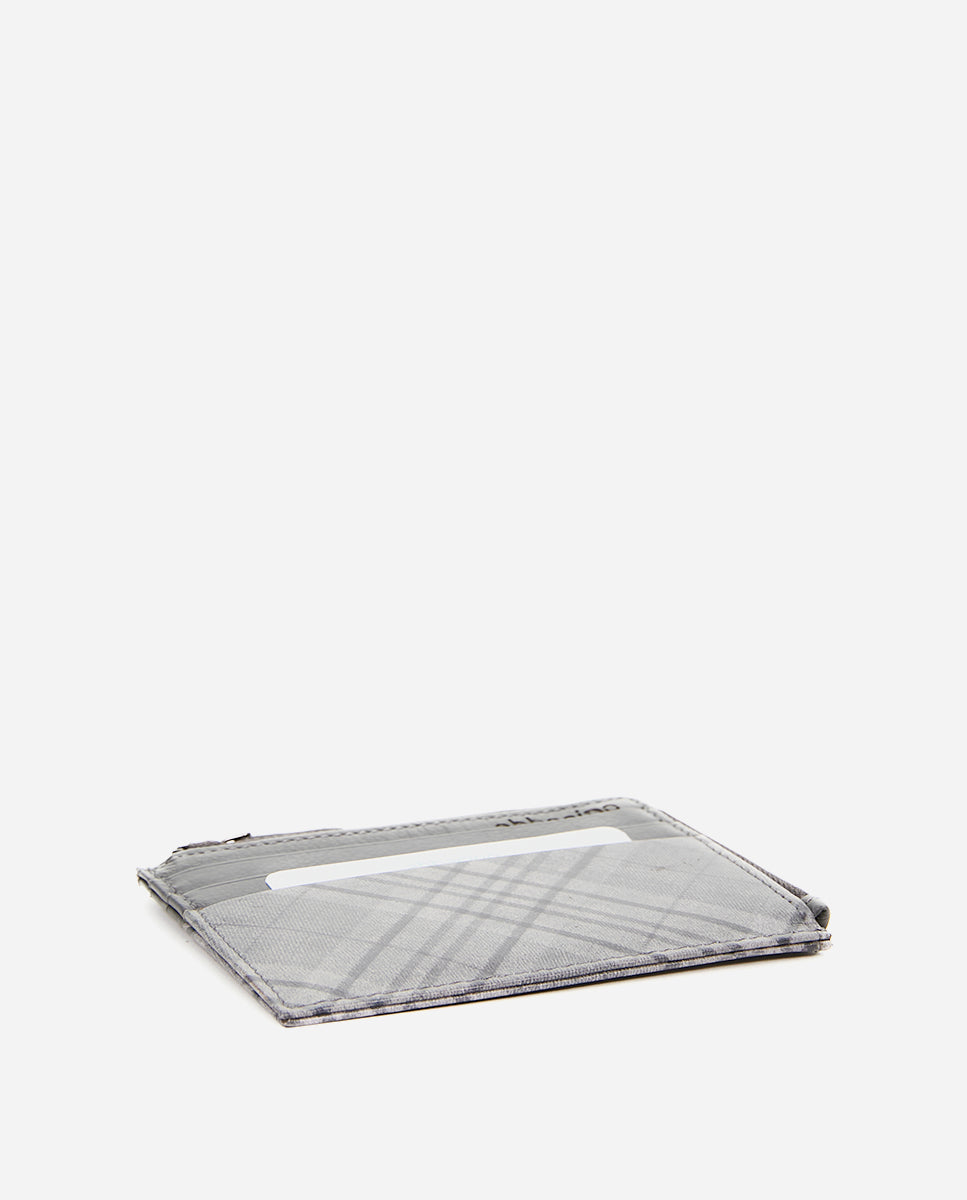 Monedero-tarjetero de mujer de piel con print a cuadros gris