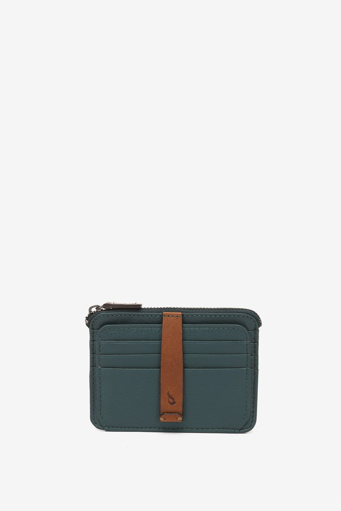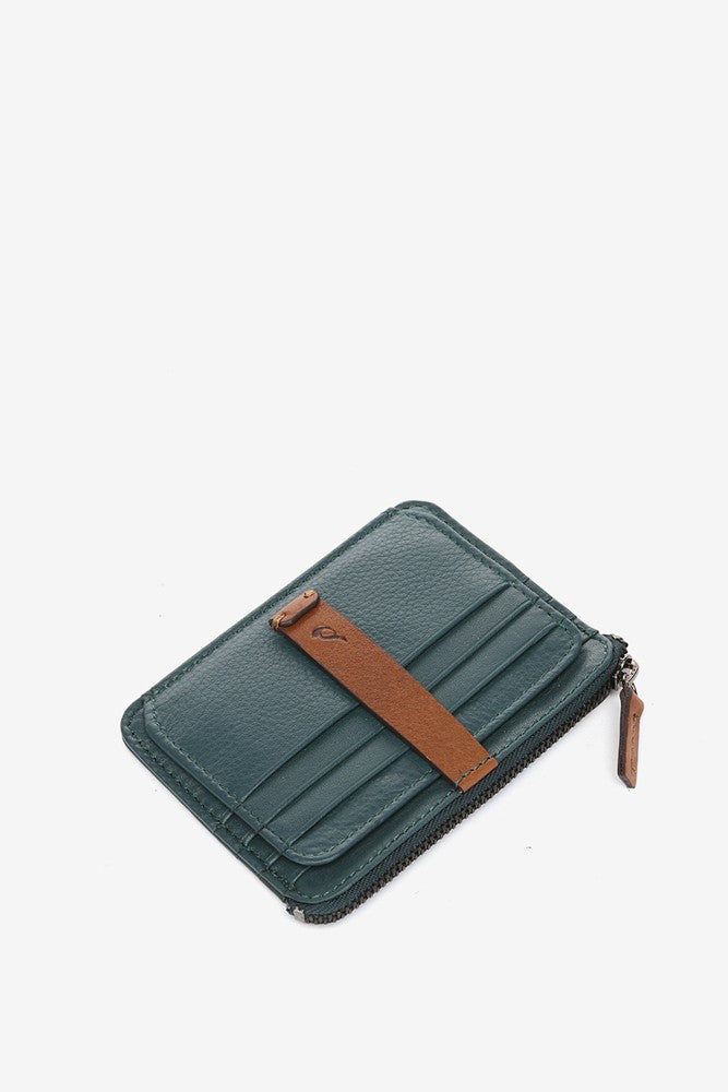 Tarjetero-monedero de mujer clásico y elegante en el que se combinan dos tonalidades de color. Este complemento es muy práctico ya que por una parte dispone de varias ranuras para guardar las tarjetas, por otra, un pequeño compartimento con cremallera para las monedas.