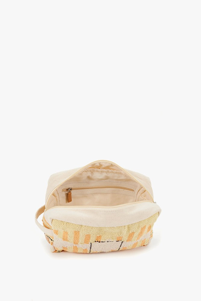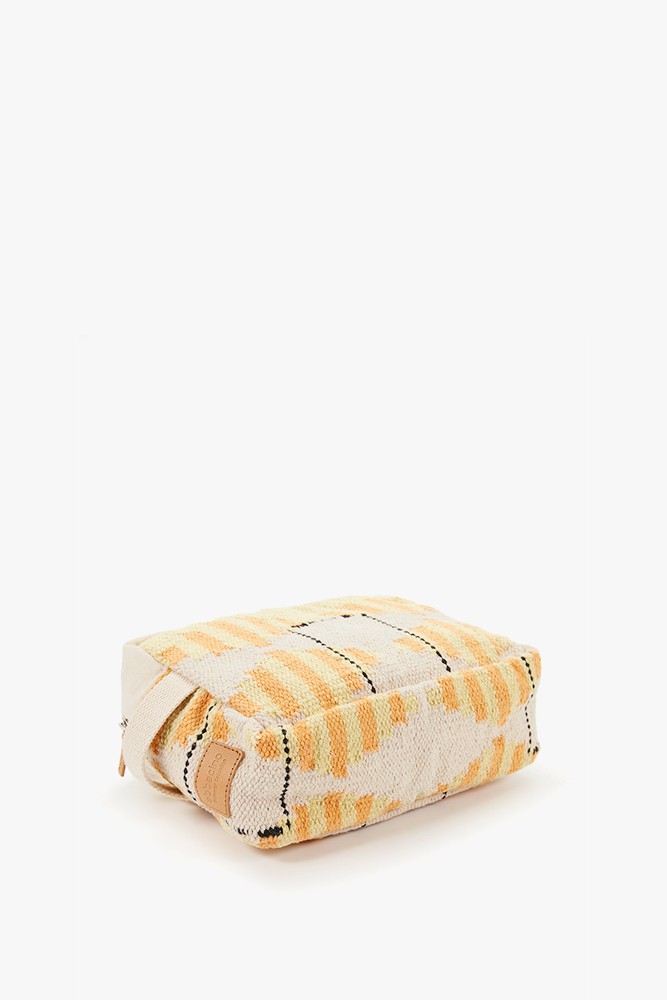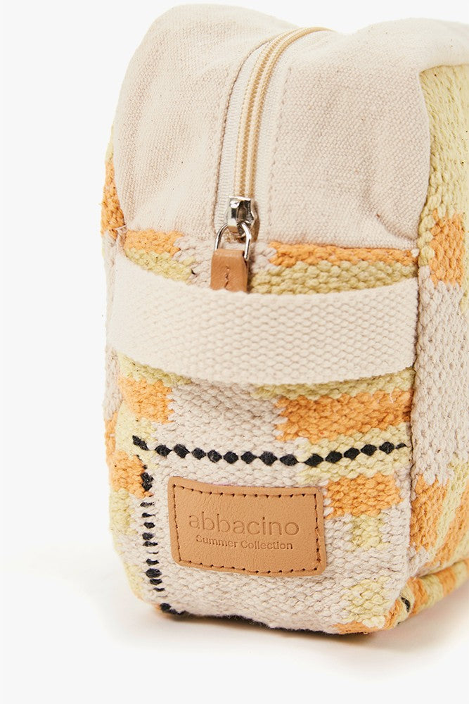 Neceser de mujer elaborado con algodón. Un diseño de tejido holgado perfecto para llevar contigo el teléfono móvil, llaves, bronceador... Ideal para los días de playa gracias a su print colorido y en tonos estivales. Cierre con cremallera superior. Incluye asa de mano.