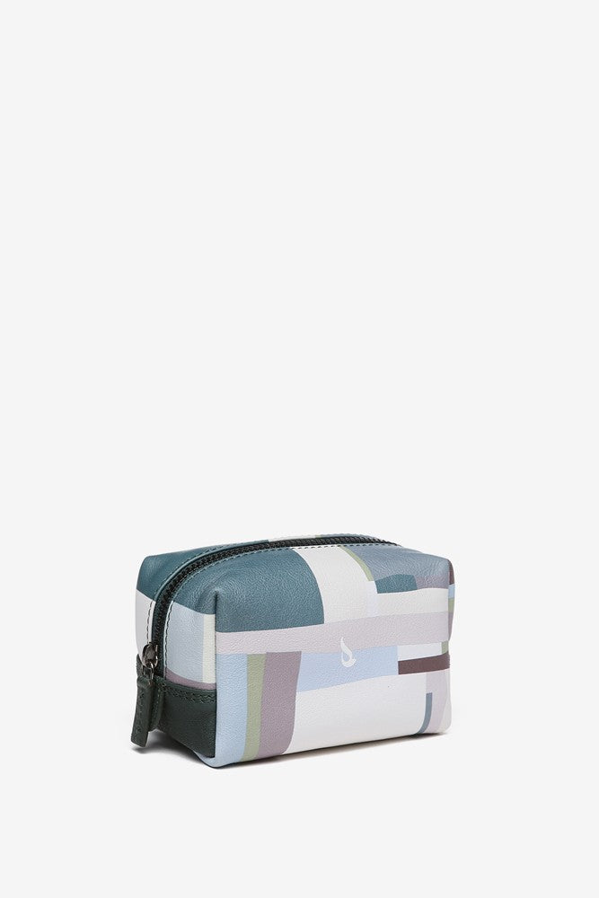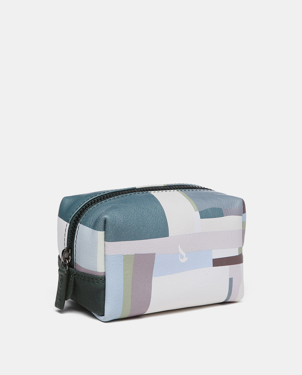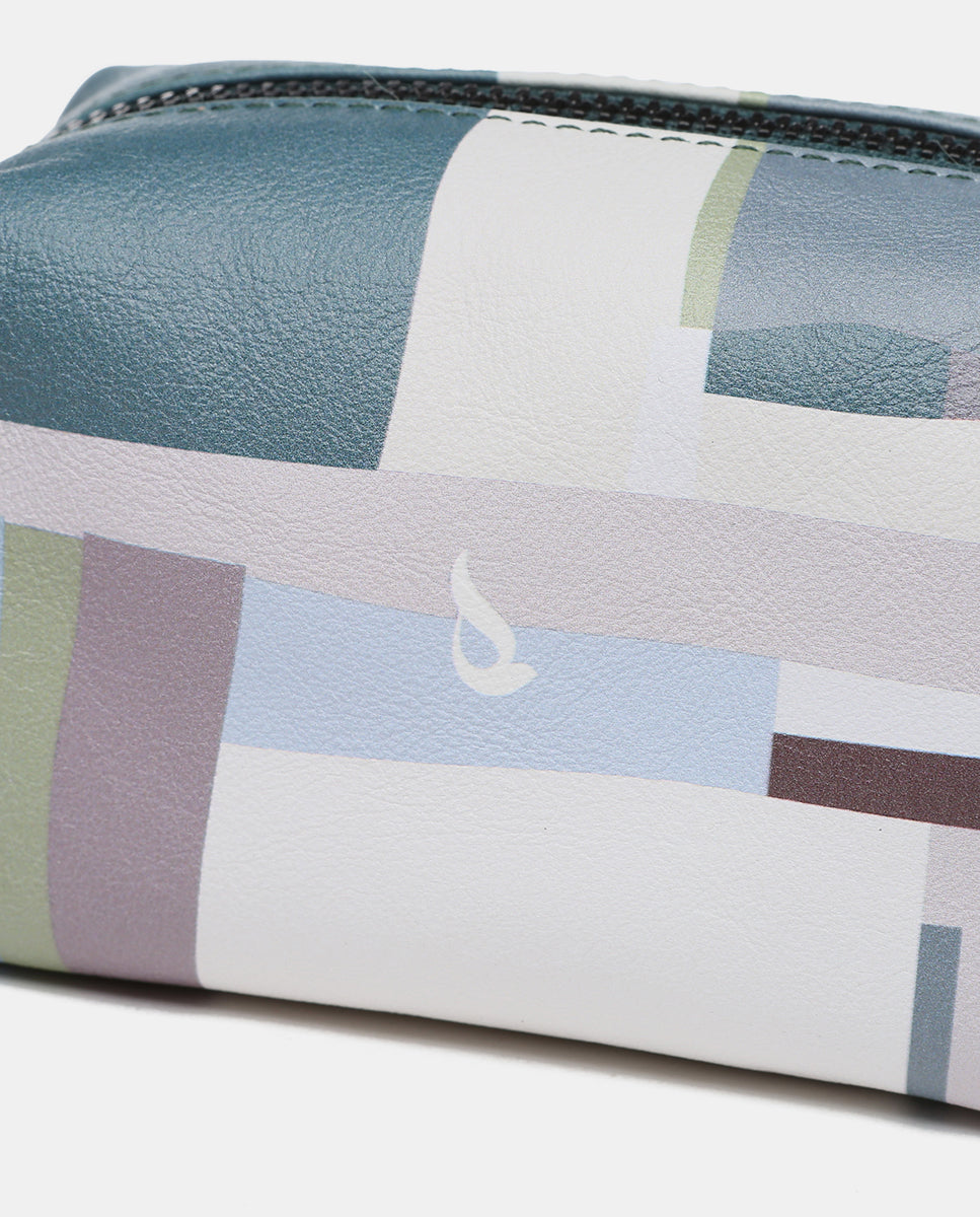 Neceser pequeño de mujer elaborado con piel Premium. Nuestra apuesta más arriesgada y original de la colección. Un diseño estampado con un bonito print geométrico propio de la firma y en colores otoñales. Sus líneas sencillas y minimalistas, permiten combinarlo fácilmente con todos tus bolsos. Un complemento ideal para acompañarte en tu día a día o tus escapadas de fin de semana.