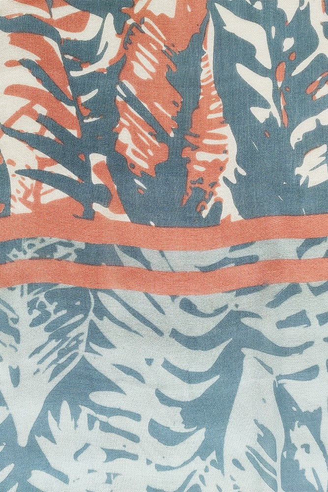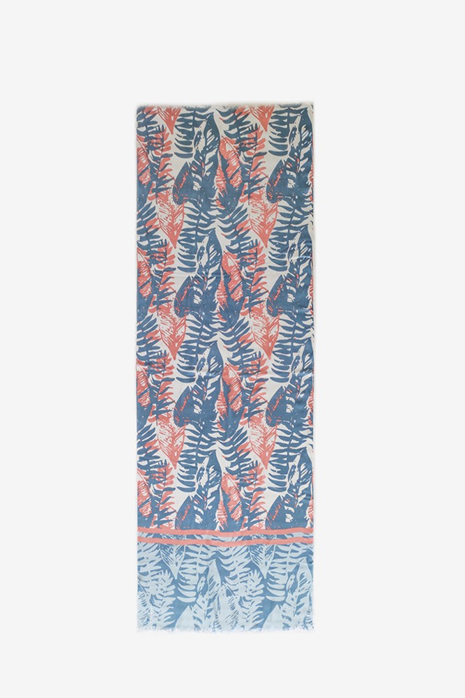 Pañuelo de mujer confeccionado con viscosa, un tejido suave y fresco, ideal para los meses de primavera y verano. Su estampado de hojas es muy estival y combina diferentes tonalidades de color. Ideal para acompañar una tarde de verano.