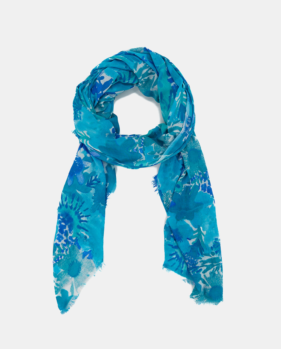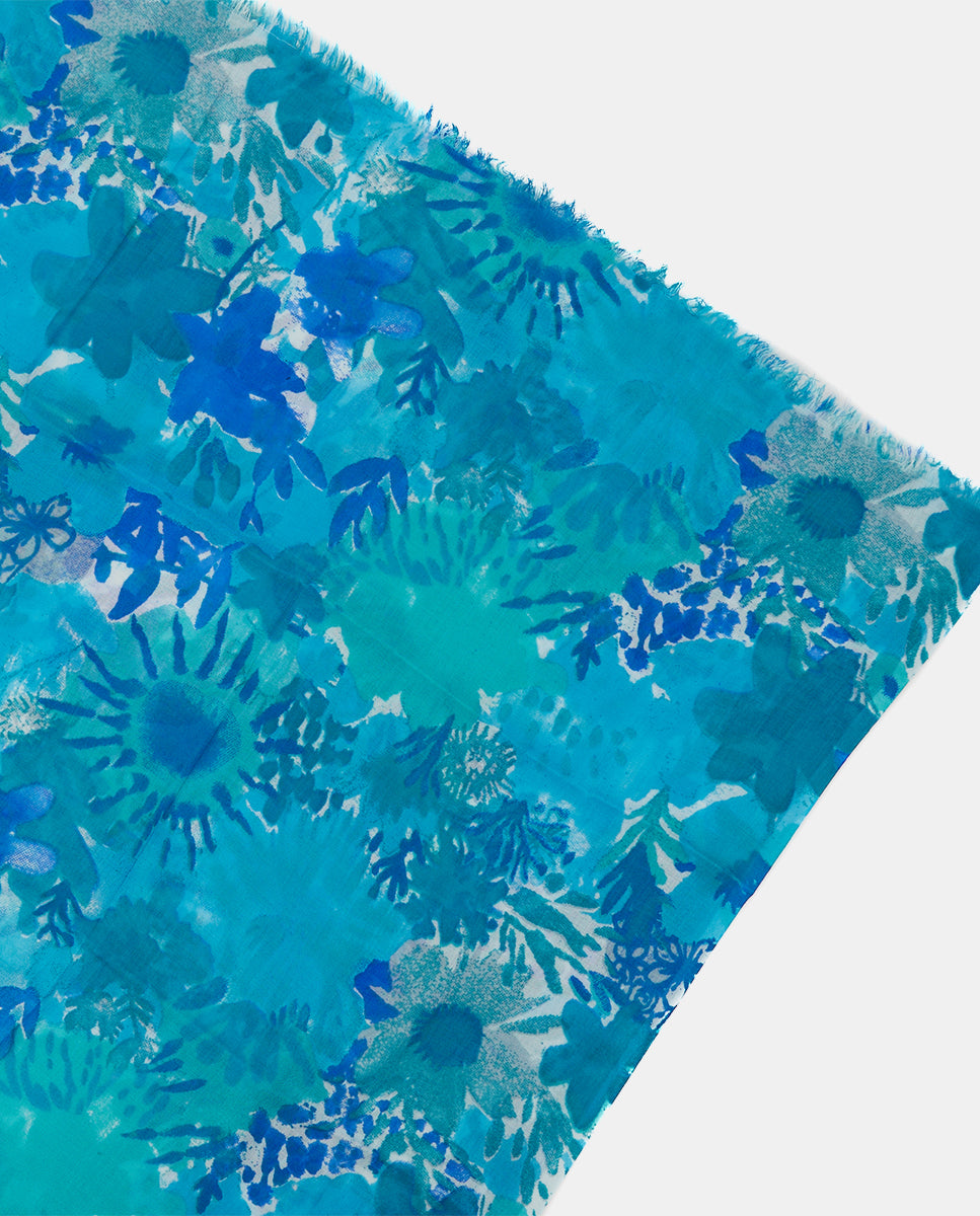Pañuelo de mujer de viscosa, suave y ligero al tacto, con un delicado estampado floral. Un accesorio versátil y práctico, perfecto para todo tipo de ocasiones. Sus bordes deshilachados le dan un toque moderno y casual.