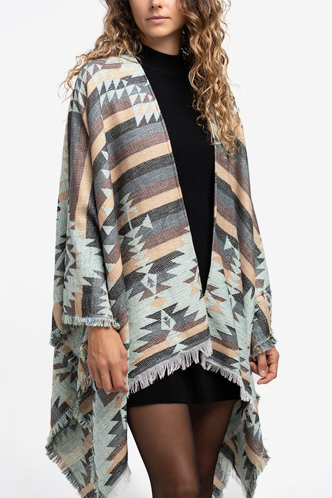 Poncho con estampado geométrico en beige