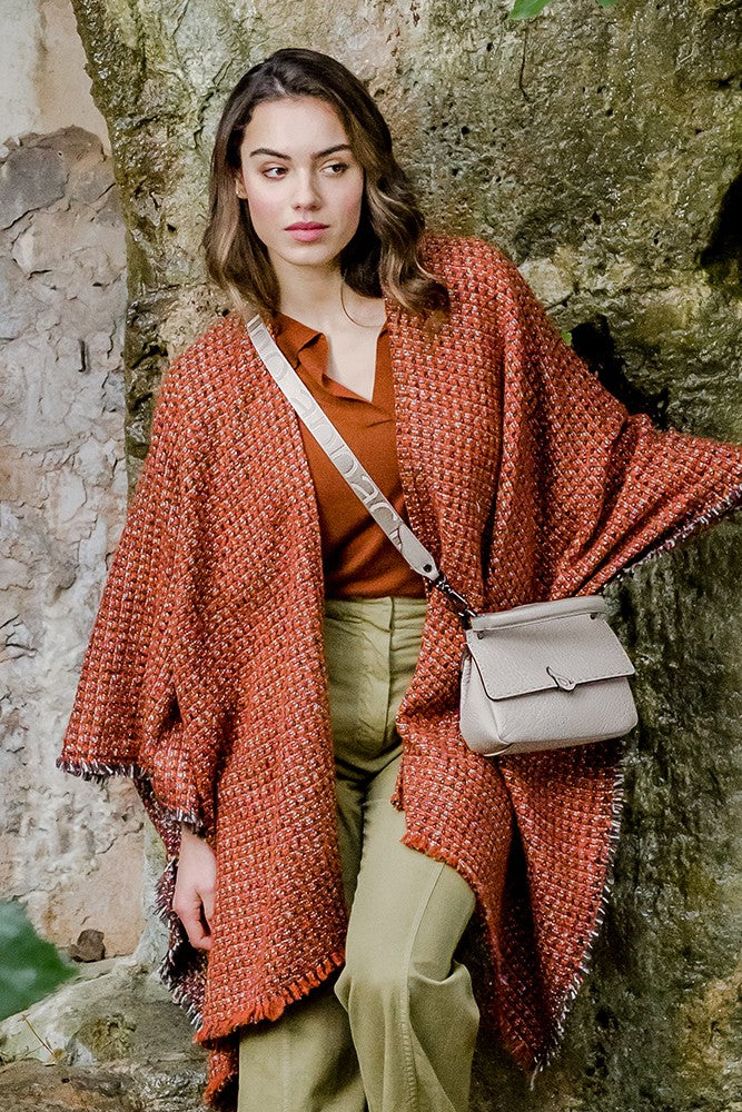 Poncho de mujer confeccionado bajo un bonito acabado jaspeado, y teñido en colores frescos, ideales para aportar un extra de luz en los días más grises y fríos. Su tejido, goza de un tacto ultra suave y es muy calentito, perfecto para los días de otoño e invierno. Sus extremos se presentan deshilados portándole un aire desenfadado y juvenil. El complemento ideal para conseguir un look impecable.
