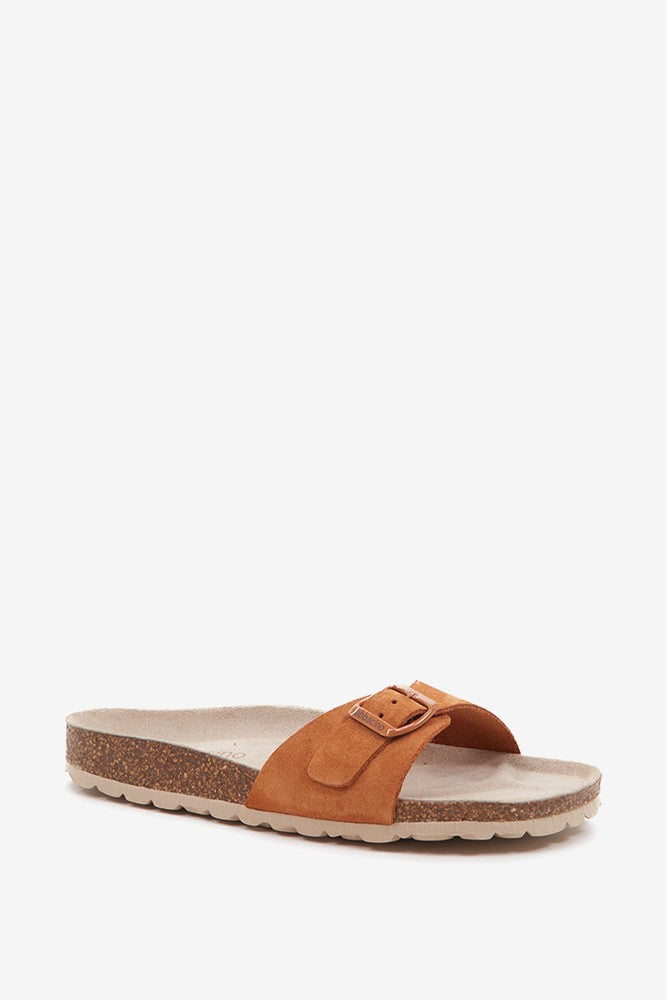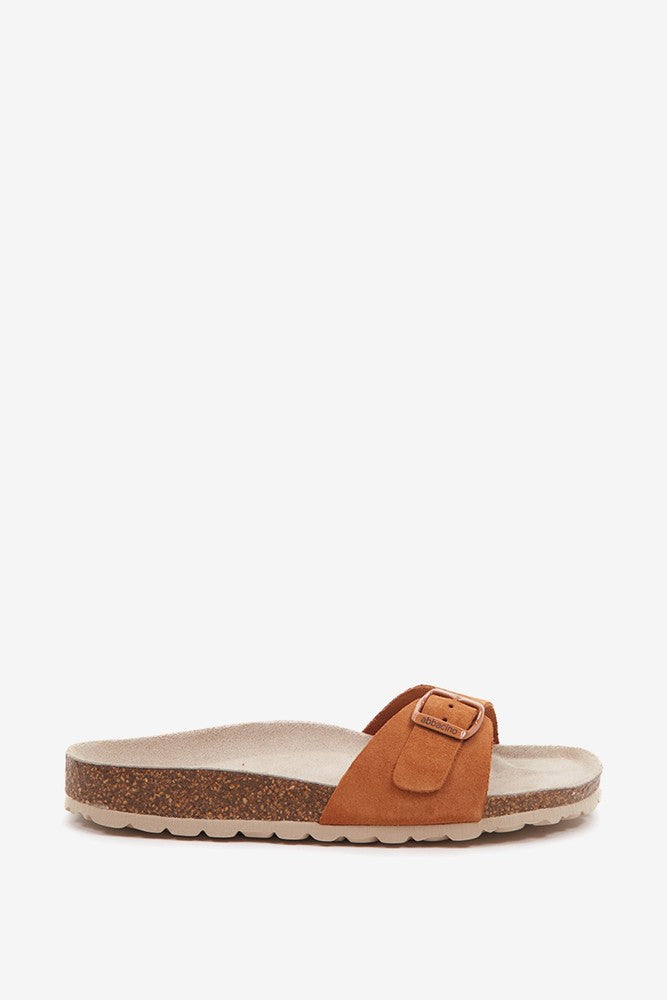 Sandalias BIO de mujer de serraje con hebilla. Un diseño clásico ideal para aportar un aire casual y desenfadado a tus looks de verano. Este modelo cuenta con una pala que se ajusta perfectamente al pie gracias a su hebilla regulable. Además, su planta acolchada de serraje aporta un extra de confort y comodidad paso tras paso (suelva EVA).