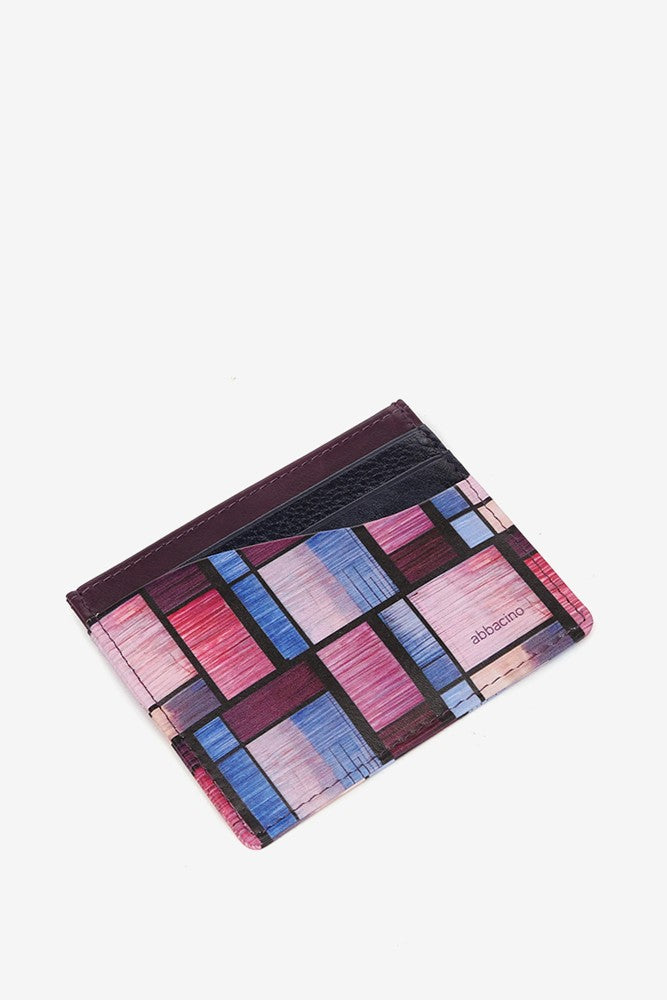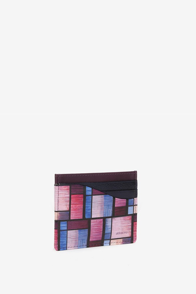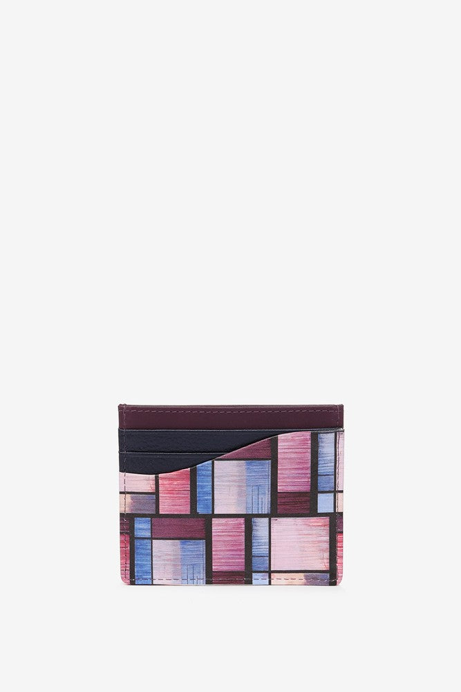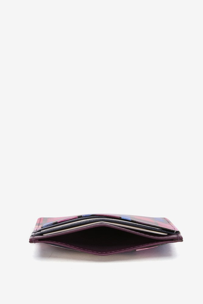 Tarjetero en piel con estampado geométrico multicolor