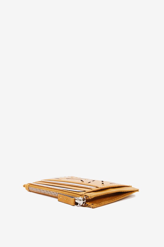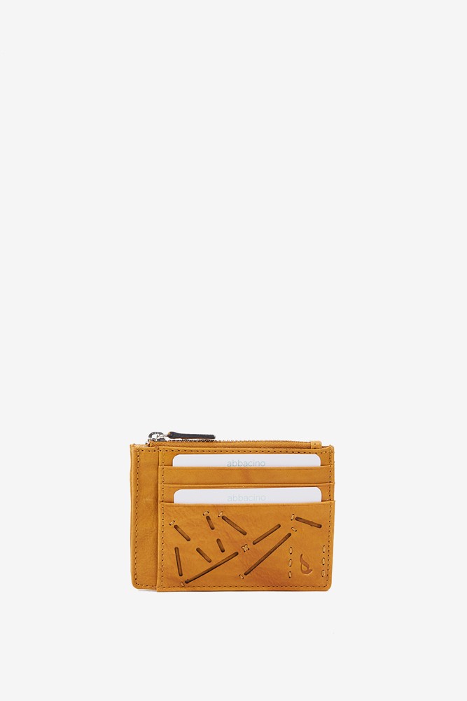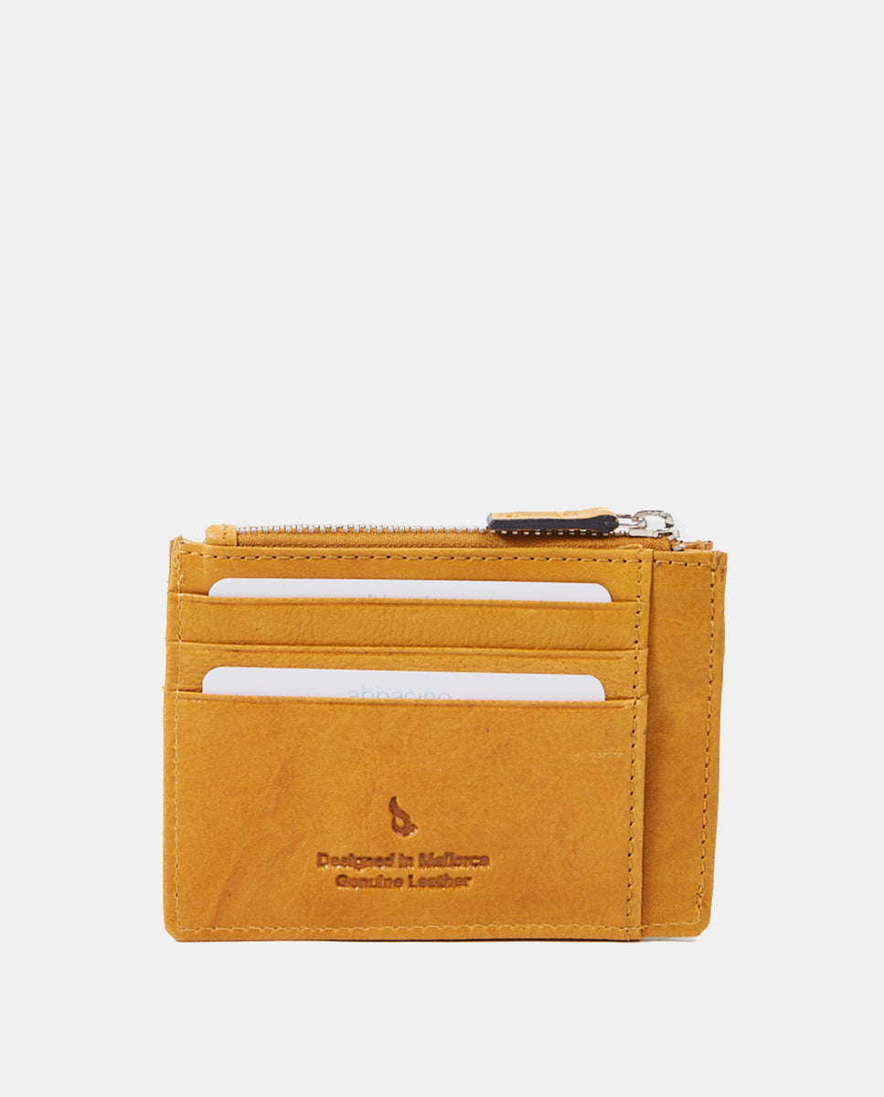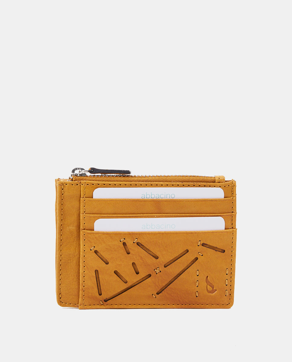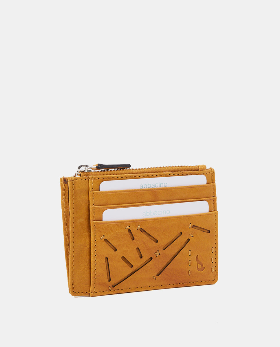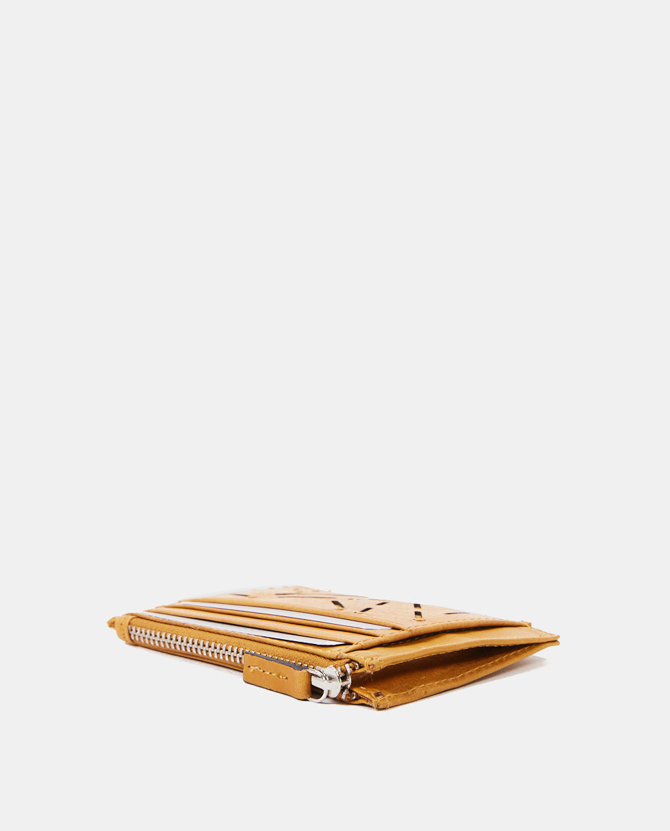 Tarjetero-monedero de mujer en piel troquelada amarilla