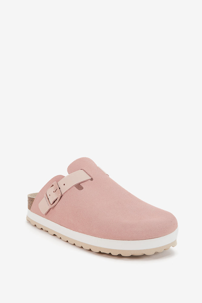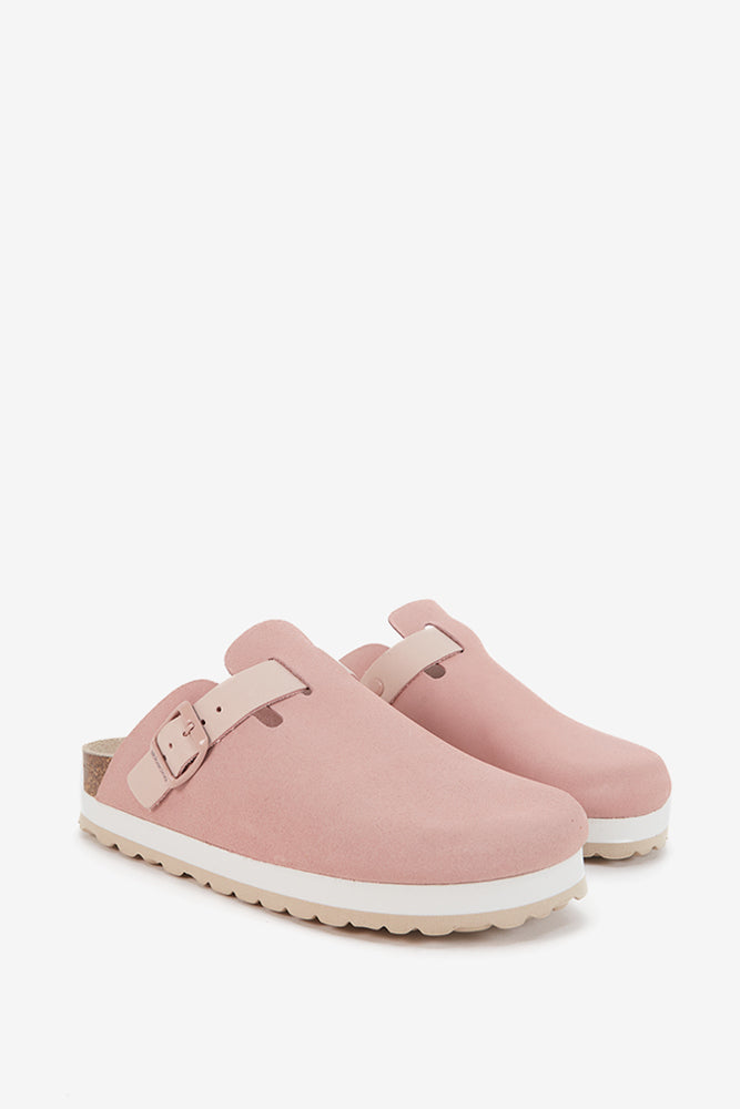 Zueco de mujer con plataforma de ante con hebilla. Un diseño clásico y atemporal confeccionado con materiales de alta calidad. Su estética minimalista y versátil lo convierte en una opción ideal para el uso diario, ofreciendo tanto estilo como bienestar en cada paso. Su plantilla se adapta al contorno natural del pie, proporcionando un excelente soporte para el arco y una amortiguación óptima. (Suela EVA).